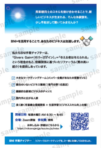 DM作成(サンプルから選択):16,500円(100部)オリジナルDM作成:33,000円(100部)印刷のみ(追加100部ごと):4,400円代理発送:応相談(内容・数量・条件によりお見積)