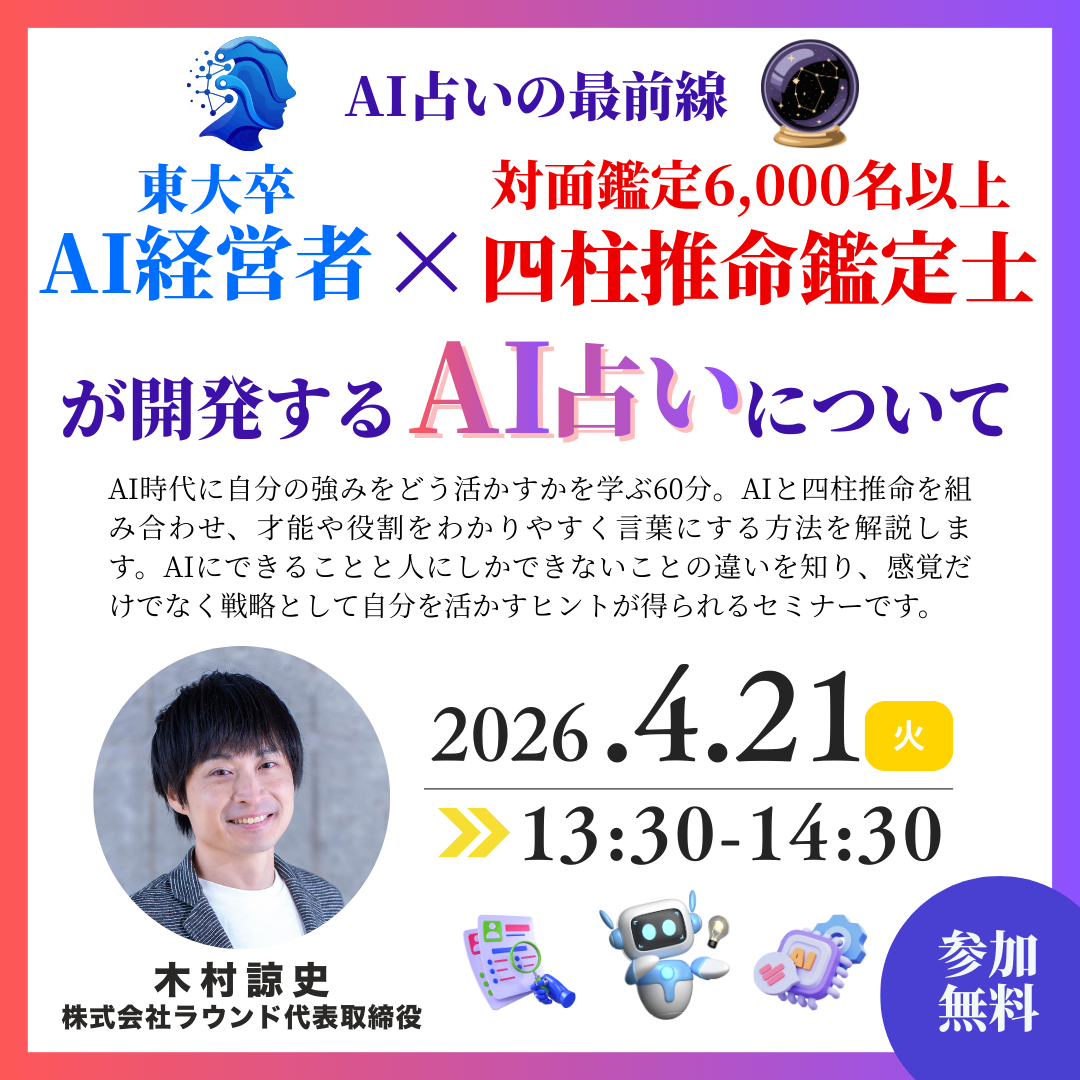 タイトル:AI占いの最前線 - 東大卒AI経営者 × 対面鑑定6,000名以上四柱推命鑑定士 が開発するAI占いについて